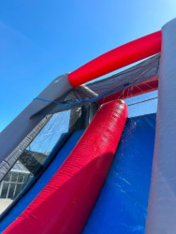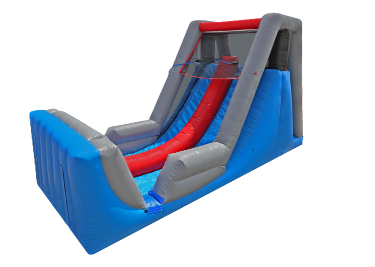 This slide can be used with or without water and placed on grass, concrete or pavement areas. Can also be paired with our 28' obstacle course to make a 55' long competition!