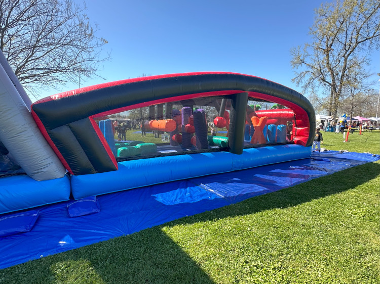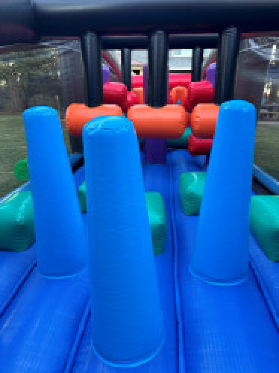 This obstacle course can be placed on grass, concrete or pavement areas.